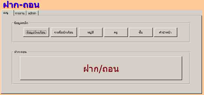 โปรแกรมสำหรับฝากถอนเงิน สำหรับโรงเรียน ใช้งานได้จริง (ไม่มีระบบคิดดอกเบี้ย)