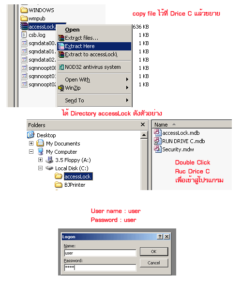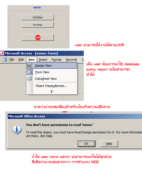 โปรแกรมบันทึกข้อมูล (ป้องกันการ modify database,query,report)