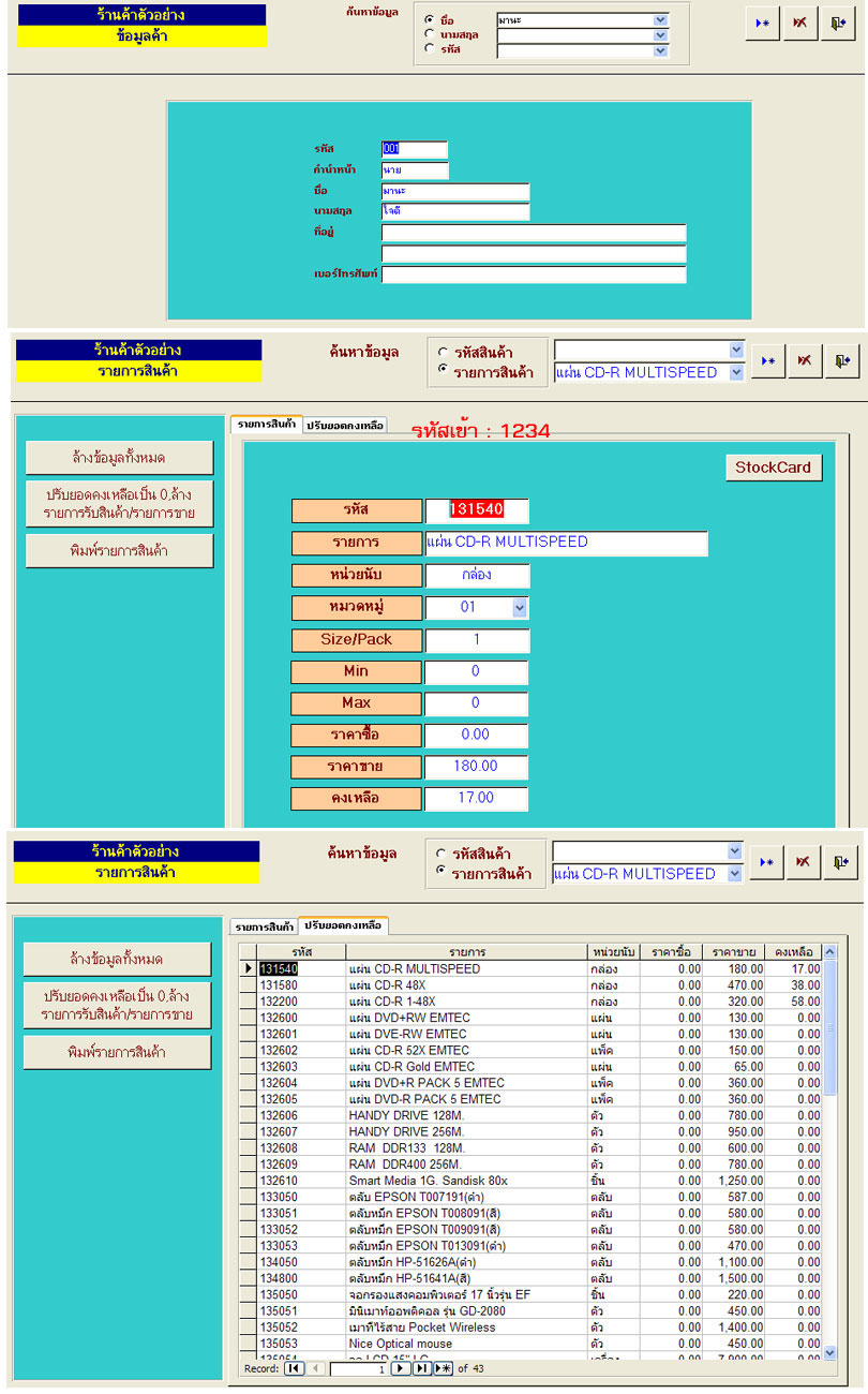 - เวลาขาย สามารถค้นหาตามรหัสสินค้า หรือชื่อสินค้าได้